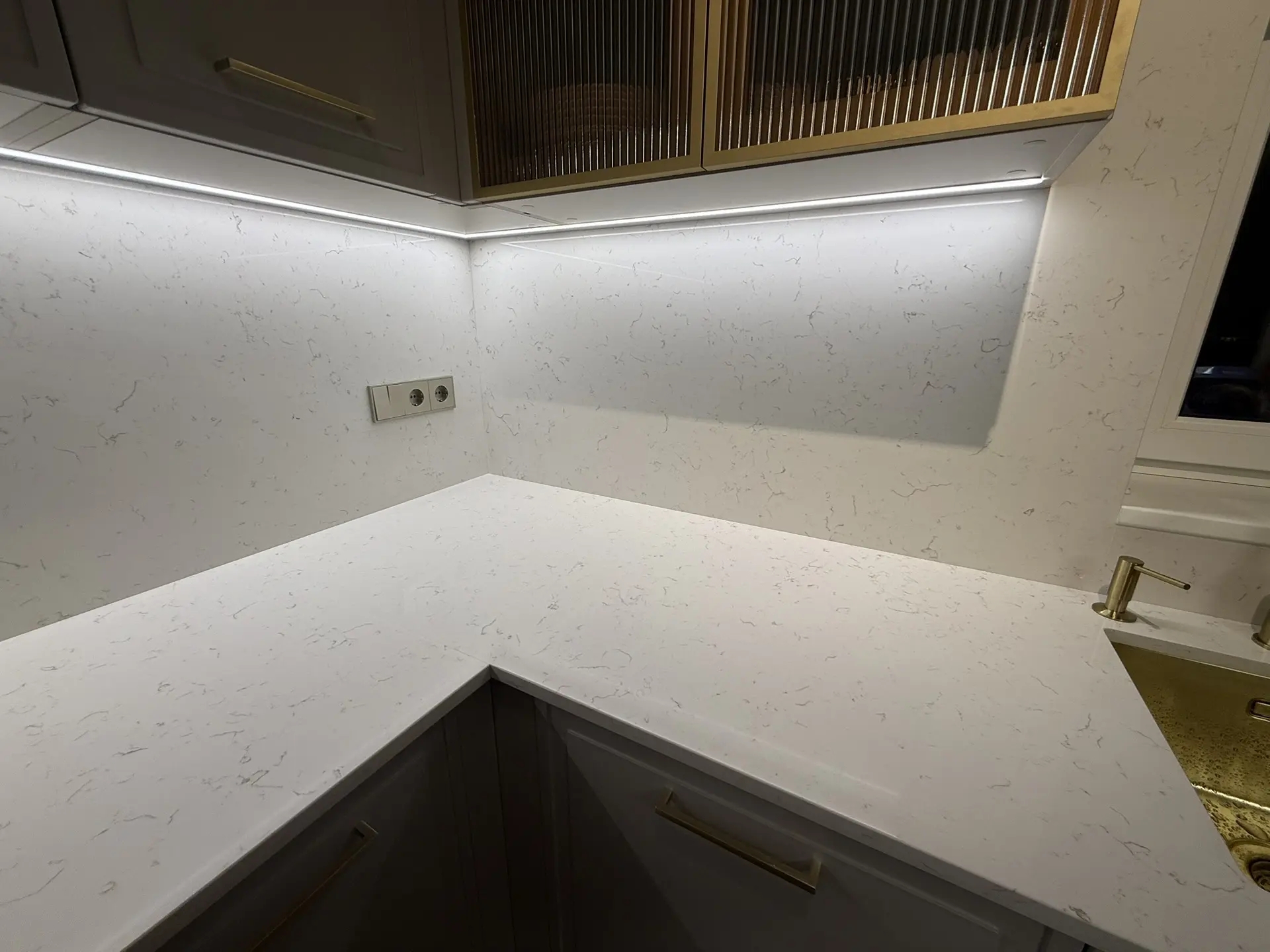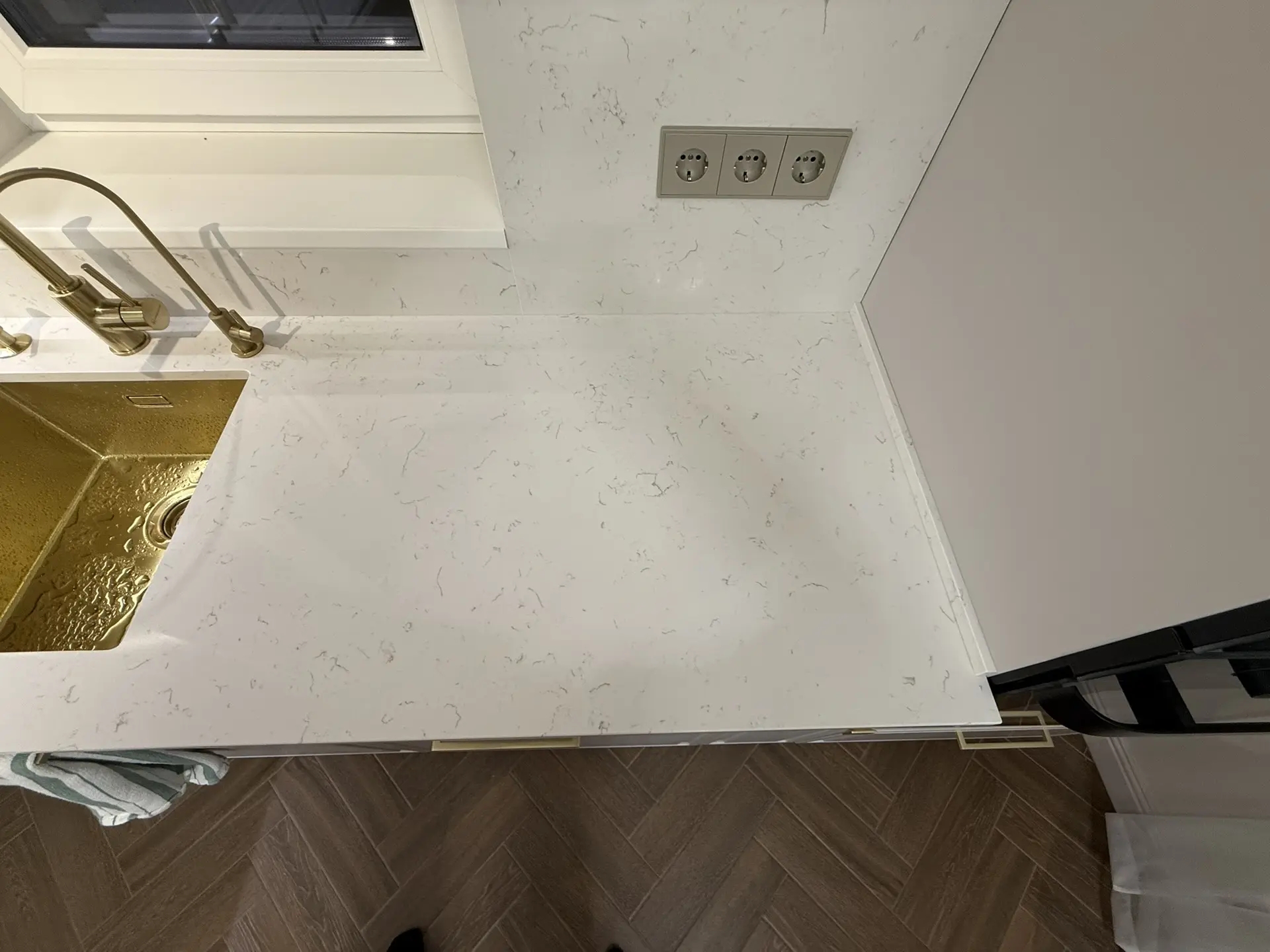 Ещё одно оригинальное решение дизайнера. Стеновая панель до потолка вокруг окна.Российский камень Аварус R520 (Астраханские пески).