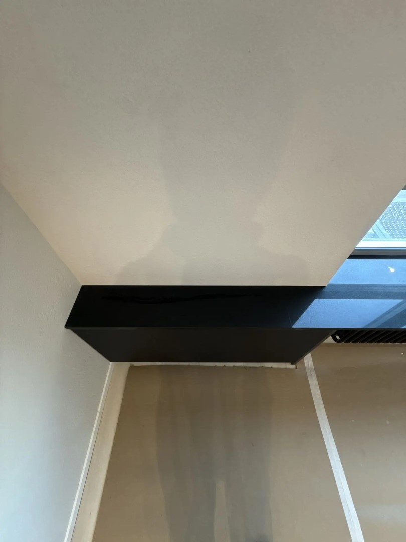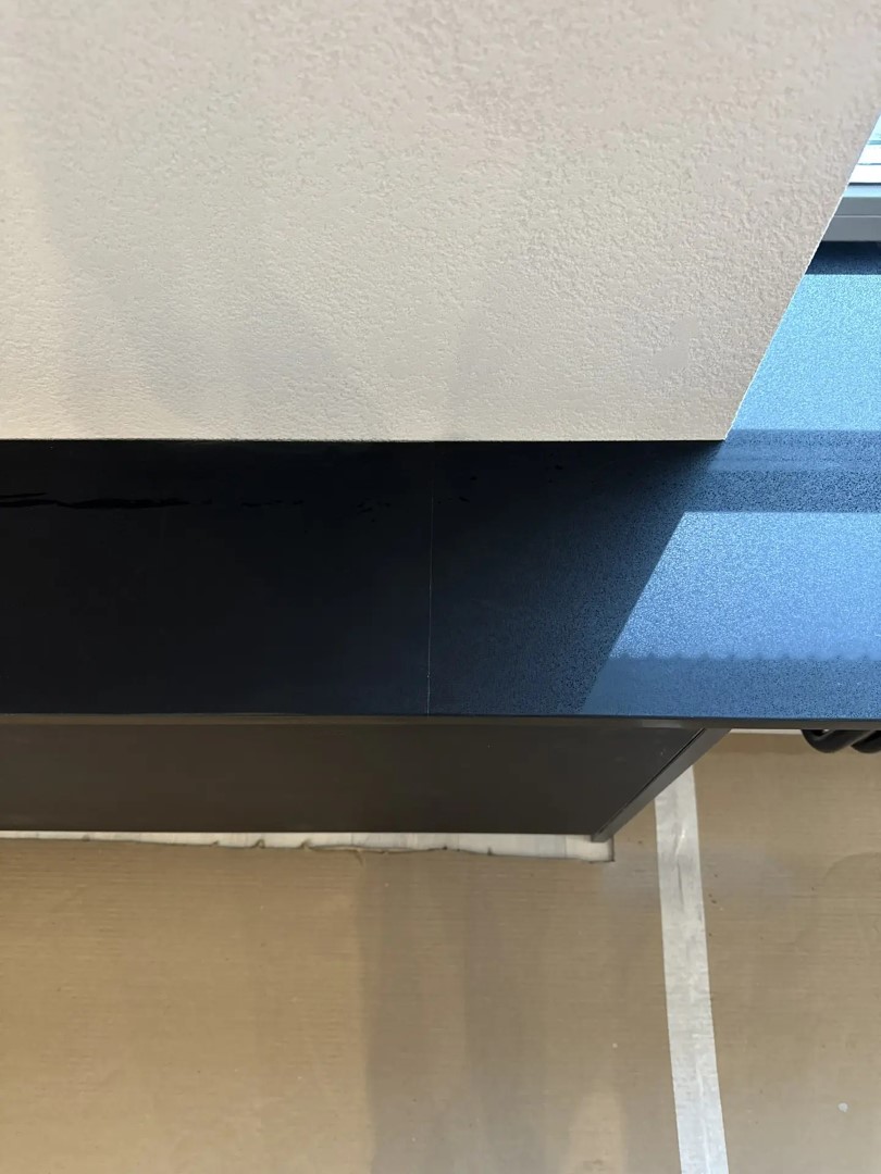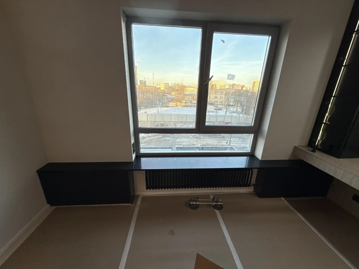 Для разнообразия. Чёрная столешница на тумбу вдоль всей стены. И небольшой мойдодыр в ванную комнату из того же камня.
