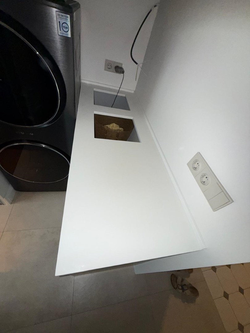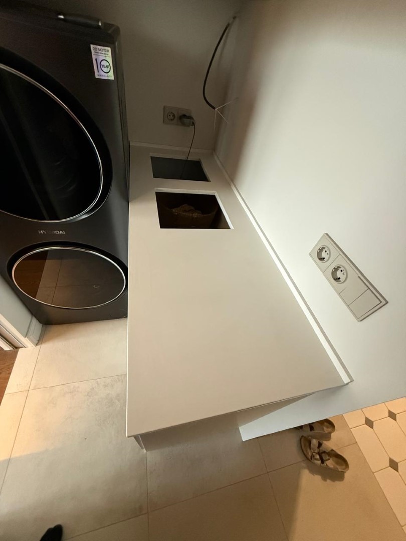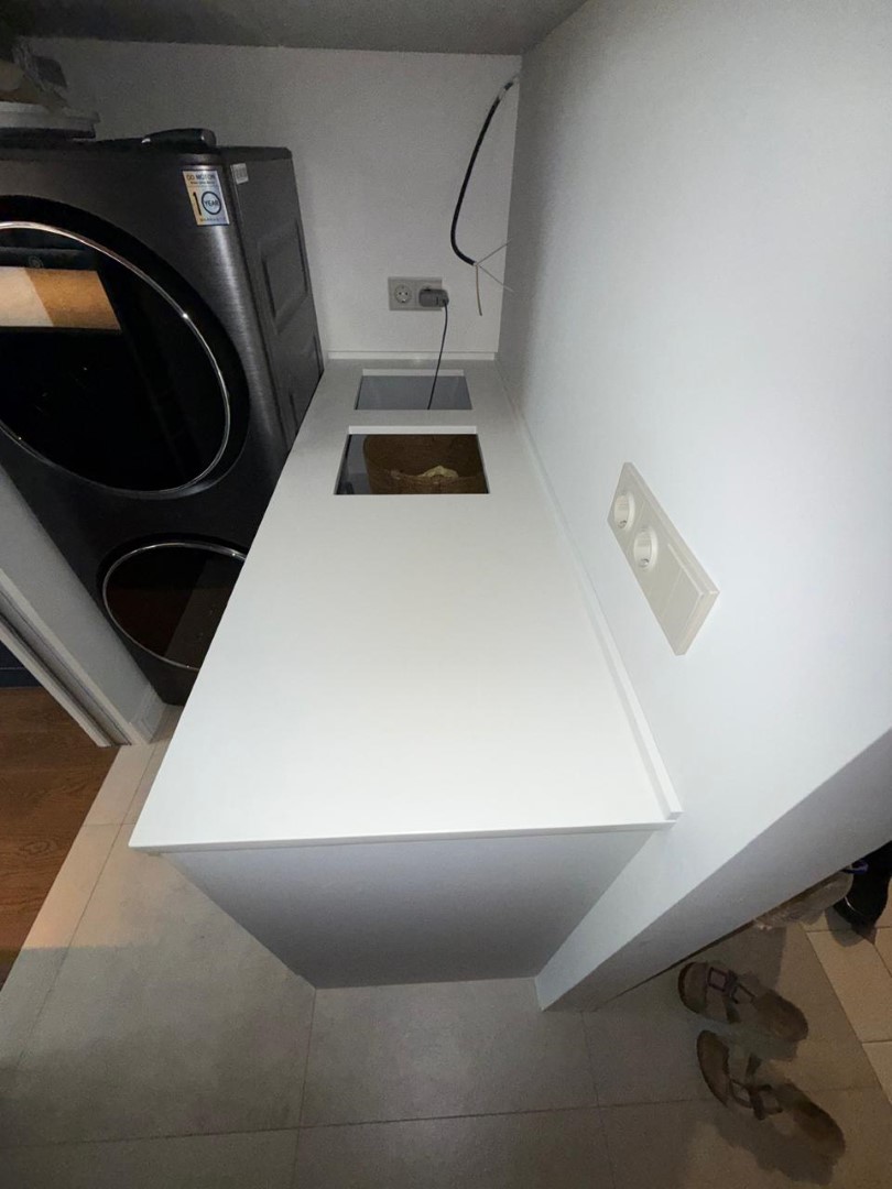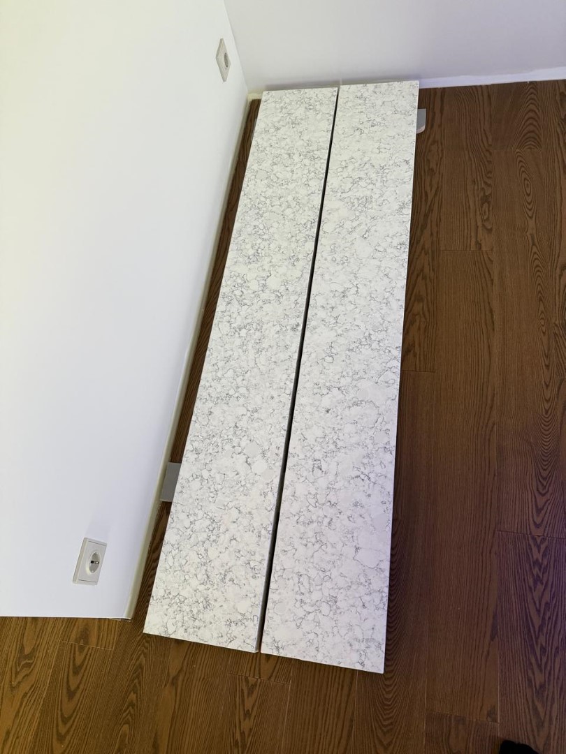 Столешница и остров толщиной 20мм с ногой, запиленной под 45* из корейского кварцевого агломерата Radianz AC711.